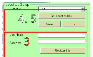 - Type in the username and password provided by LevelUp and click the Register Site button (displayed below)