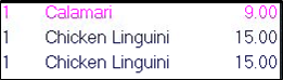 Notice: Our “Calamari” turns to a different color. The system will turn each course a different color to make it easier to differentiate between courses while ordering them