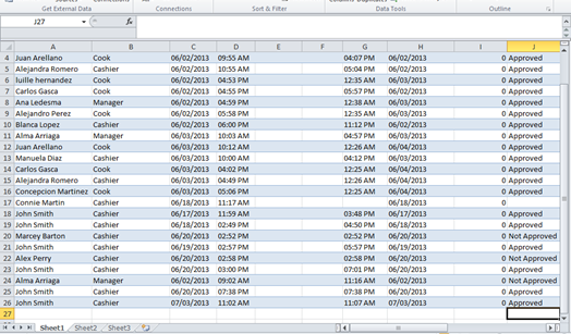 Example of Time Records in Excel, Real-Time