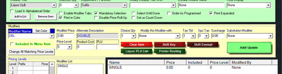 While you may simply want to create a modifier with an upcharge or ring in the item twice, below are several alternatives for ringing in liquor doubles, rocks and upcharges.