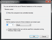 From there, click on the Advanced button and make sure that the box is checked to Allow this computer to be controlled remotely, and that the maximum amount of time that invitations can remain open is set to 12 Hours.