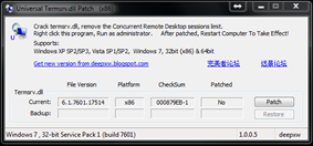 Next, install the Windows patch that will allow multiple users to log onto the server at once through RDP. The patch can be found on the Microsale FTP site. Once logged onto the FTP site go to the Msaledealer folder and then to the WinXP TS Patch folder. Inside of that folder there is another folder called UniversalTermsrvPatch_20090425. Download this folder to the M$CD on the Server machine. Once downloaded, run the UniversalTermsrvPatch. Once the dialogue box is displayed click the button that says Patch.