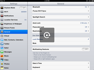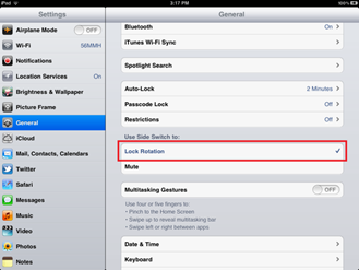 Once you are connected to the Wi-Fi network scroll down and touch the General icon and place a check next to lock screen rotation.
