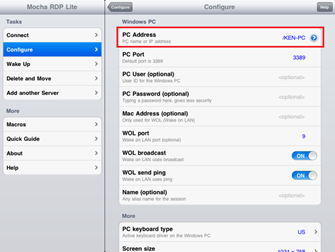 Start up the app and touch Configure and then touch PC Address and enter the IP address of the server that the iPads will be connected to. To find out the IP address of the machine you want to connect to, click start>run>and then type in cmd, which will bring up a command prompt. Once there type in ipconfig /all and you’ll see the IP on the screen.