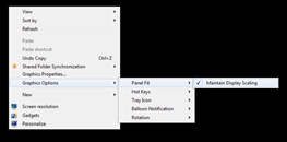 The last part of the Windows portion of the setup is to log into each User Account you created for each iPad that’s connected to the server and right-click on the desktop and go to Graphic Options>Panel Fit>Maintain Display Scaling, and make sure it is checked. If the machine you’re using as the server has laptop style display adapter, make sure to select Maintain Aspect Ratio is checked.