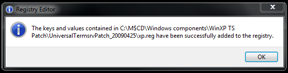 Another prompt will follow saying that the keys and values have been added to the registry. Click OK to complete the install.