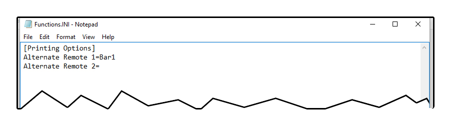 - After the menu item is created you will need to add the functions.ini to the MicroSale directory on each register in which you wish to use function. See below for an example of the .ini file as well. The other remote printer name (Inside Bar) would be put into the “Alternate Remote 1” field.