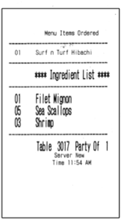 Ingredient List – designed for Hibachi Style Cooking. MicroSale will print the ingredients that are required to prepare each entrée. This ensures that the proper food is taken out to the Hibachi Grill to prepare at the table in front of the guests.