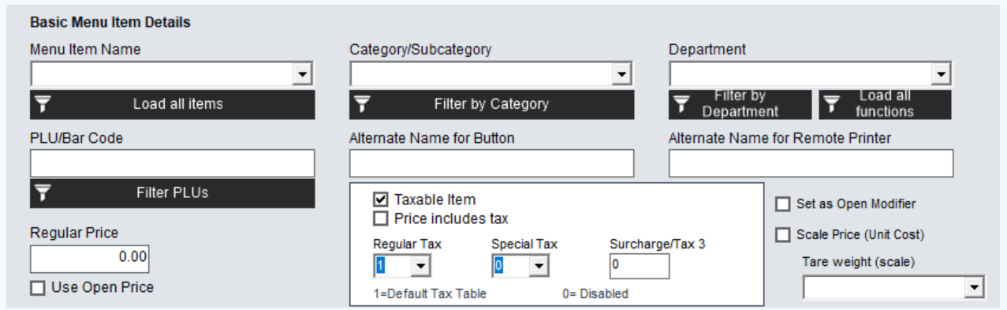 - The tax options are now consolidated in one area; combining the checkboxes and tax rate tables together makes it easier to see if an item is taxed and assigned tax rates
